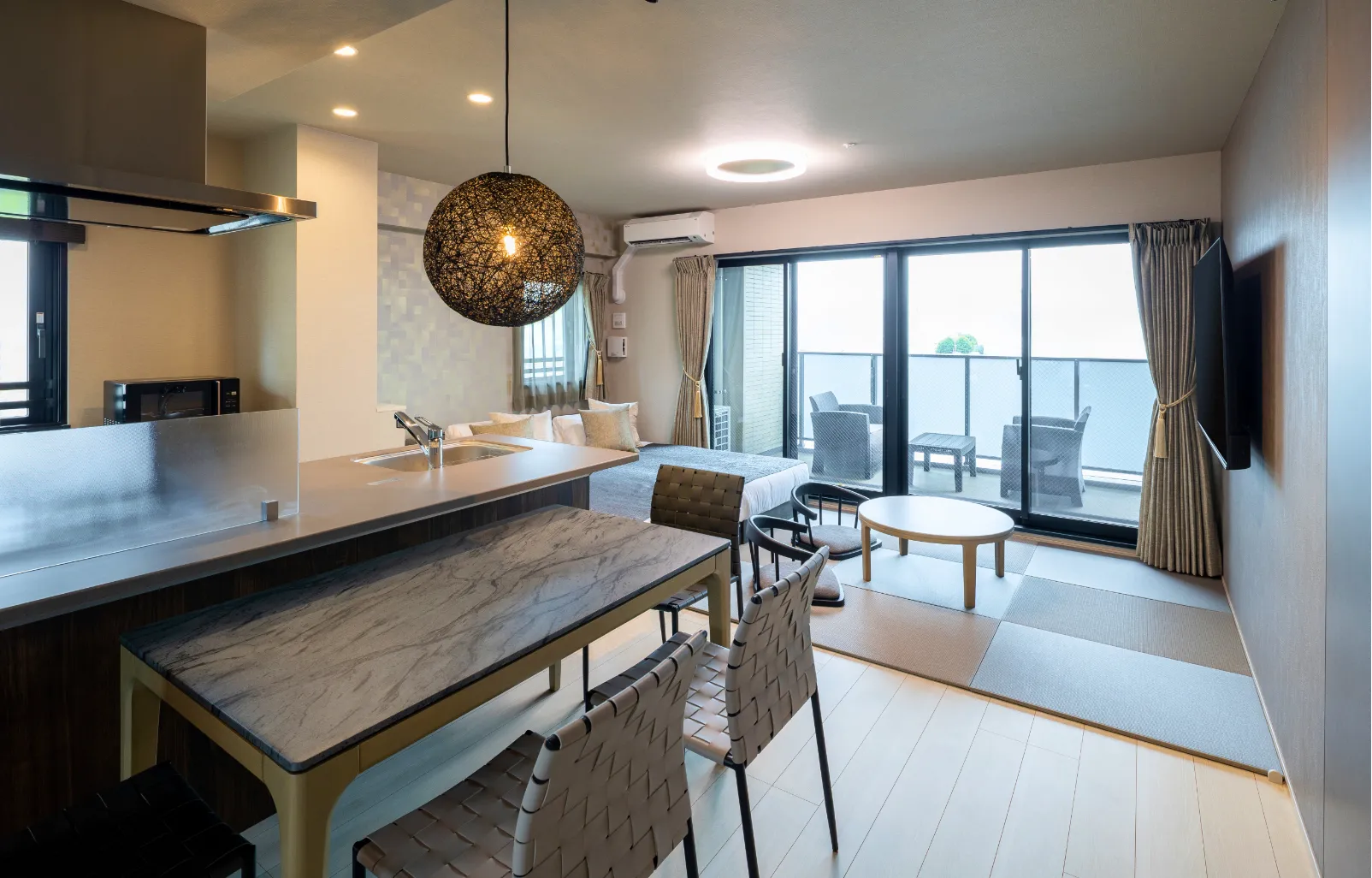Traditional elegance blends with modern aesthetics in this Japanese-modern space.